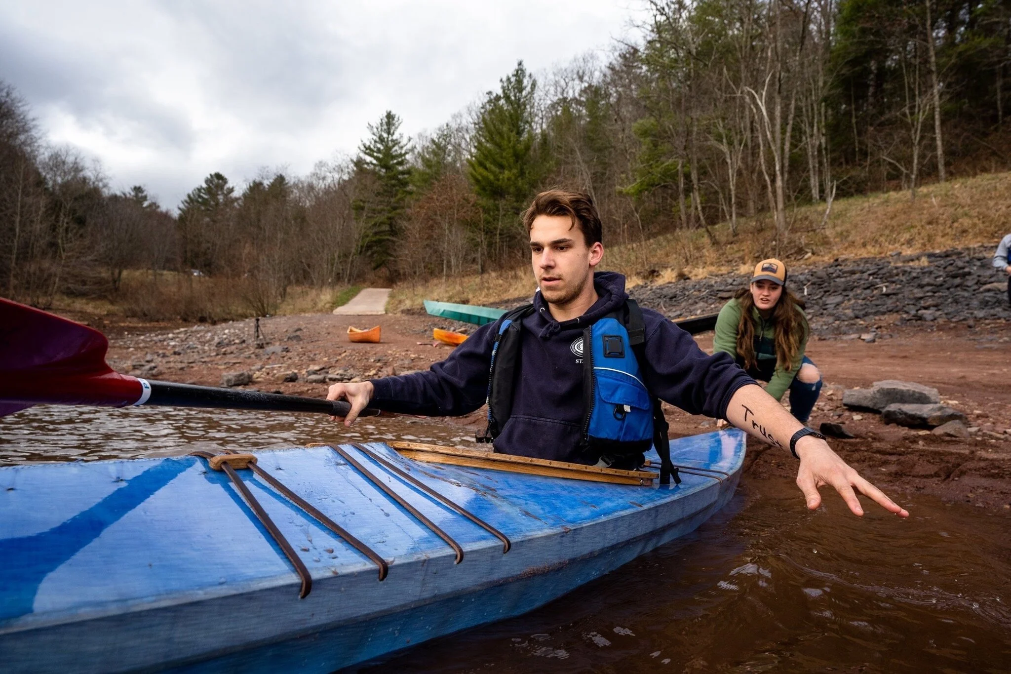 Skin-On-Frame Kayak, Made with Fir, Cedar, Ballistic Nylon, and Leather.