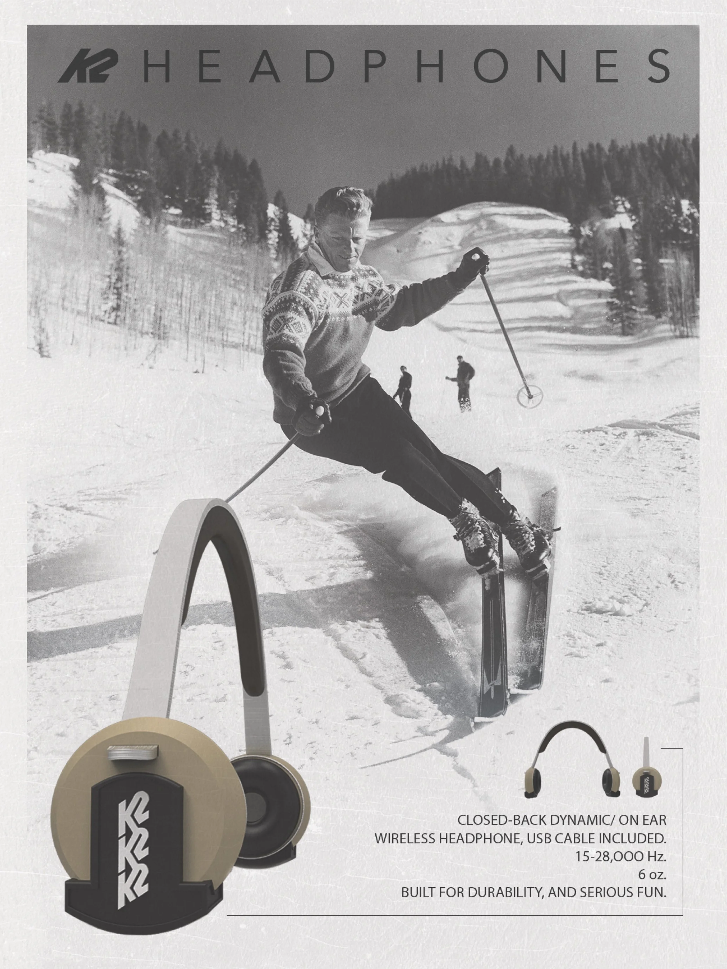 Design a pair of headphones from a brand that doesn’t make headphones: I started by choosing a brand that I appreciate. K2 is a ski and snowboard brand that had super interesting style and a long history. Looking at their products, I was trying to absorb their design language and applying it to a pair of headphones.